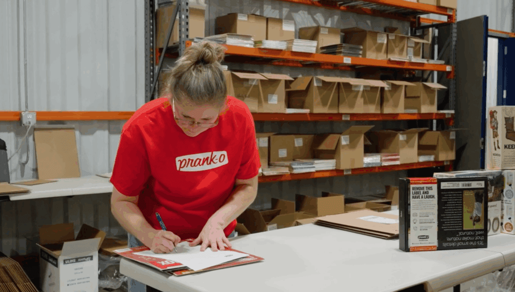One year in, Prank-O has full control of their fulfillment. Orders get packed exactly how they want. Marketing inserts go in every box. And when the holiday rush hits, Ashley sets her own schedule.